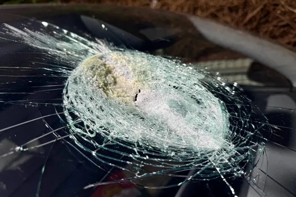 Enligt ABC News Australia körde veterinären Andrew Melville-Smith sin nya elbil tillsammans med sin fru på Augusta Highway när han hörde en kraftig smäll. ”Jag trodde att vi hade krockat”, berättade han, efter att ha sett hur glaset splittrades och bilens inre fylldes med vit rök. Vindrutan hade en cirkulär spricka och tecken på att ha utsatts för extrema temperaturer.