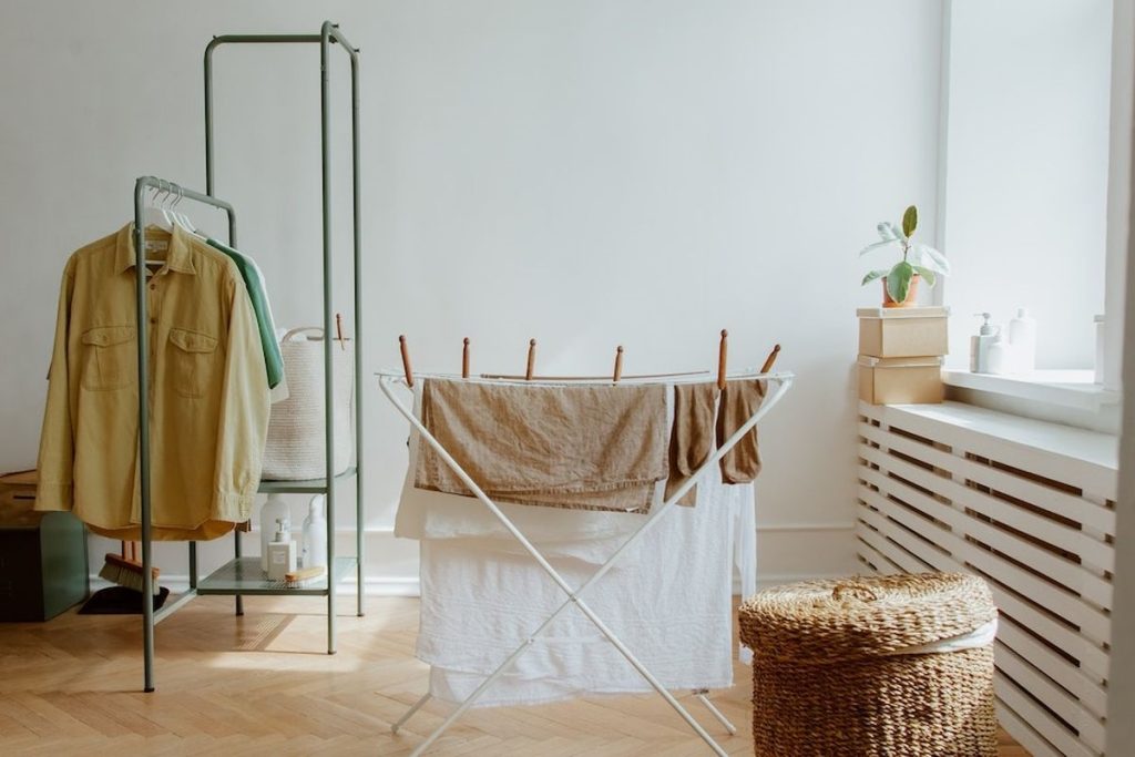 Om du verkligen inte har något val eftersom det regnar eller du inte har någon utomhusplats att torka dina kläder på, tänk på att vädra rummet där du har placerat torkställningen, välj ett ventilerat och så svalt rum som möjligt i huset. Var försiktig så att du inte placerar den för nära en radiator för att undvika brandrisk.